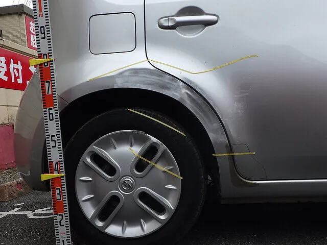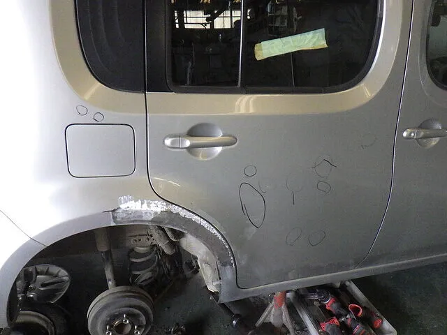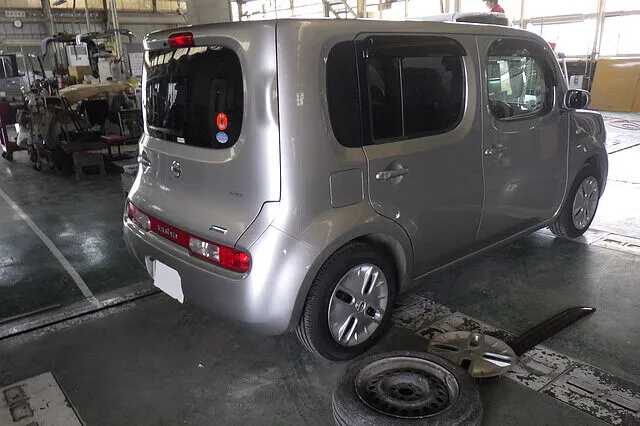 常総市 リアクォーターパネル・リアドア キズ・へこみ修理・フロントガラス交換 日産 キューブ|鈑金塗装