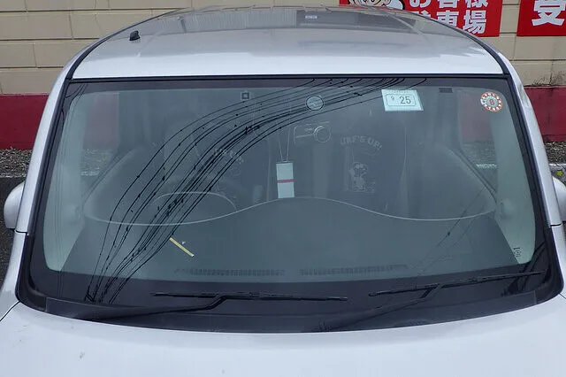 また、フロントガラスには飛び石によるヒビが入っており、放置すると割れが広がる危険がある状態でした。