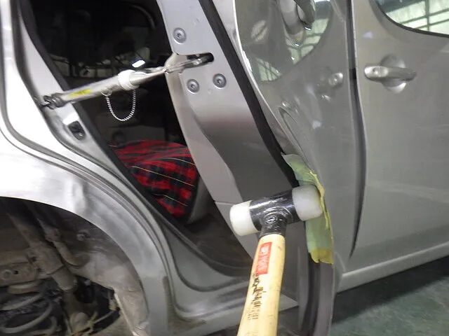 右リアドアにも押し込み変形があったため同時に鈑金。